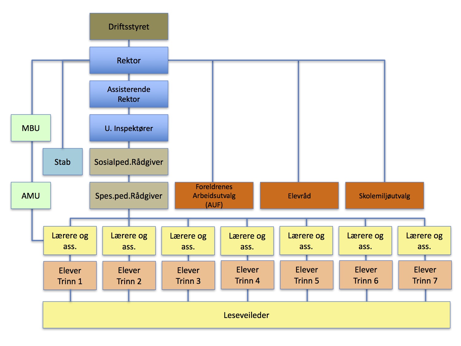 - Ved skolen er det ansatt 4 skoleledere, ca. 50 lærere, 2 sosiallærere, 1 leseveileder og ca.15 assistenter